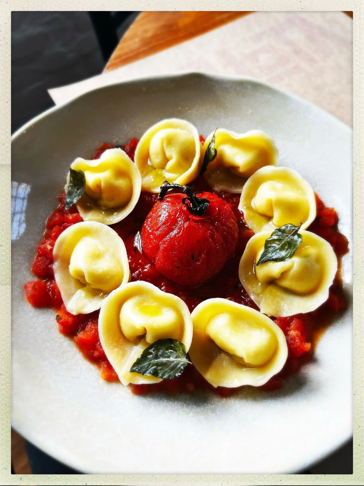 Capelacci de Queijo Tulha Molho de pomodoro fresco e confit de tomate-rama
