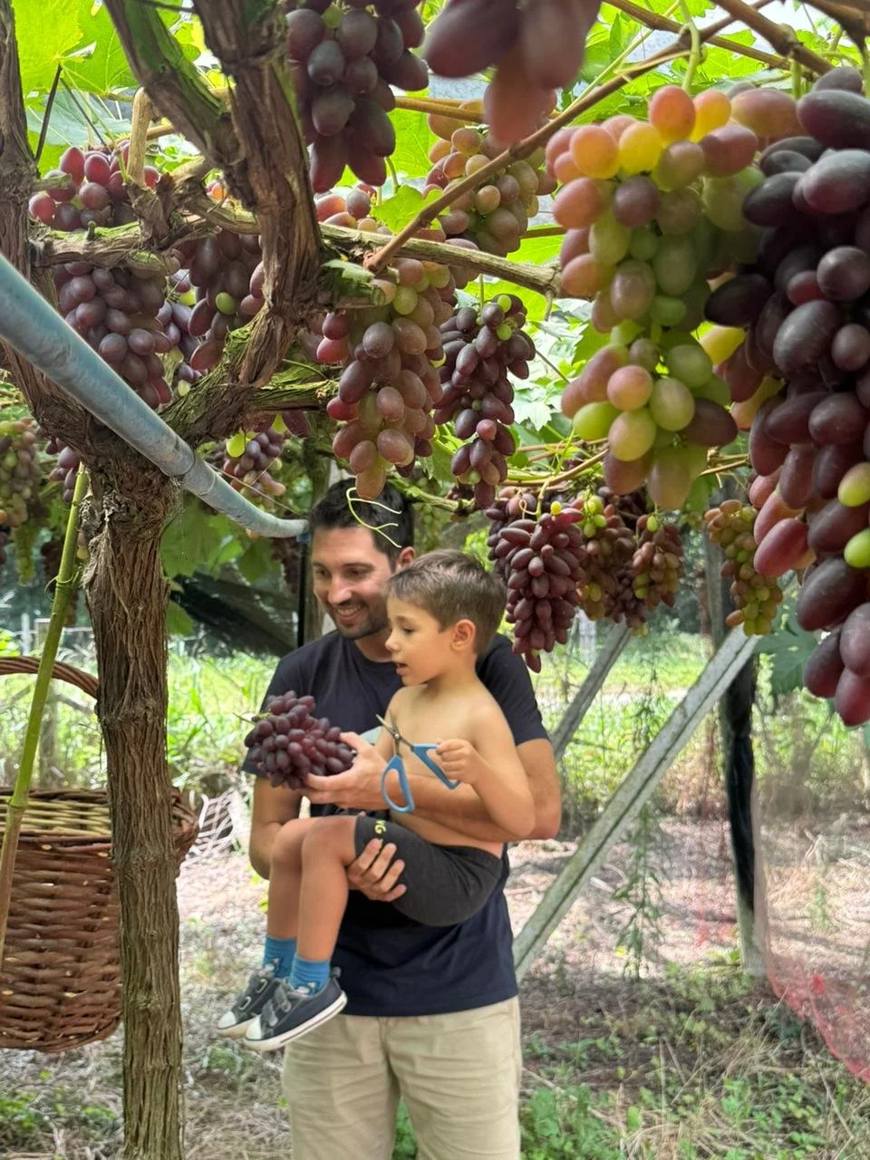 Luca e o filho Nico no vinhedo (foto arquivo pessoal)
