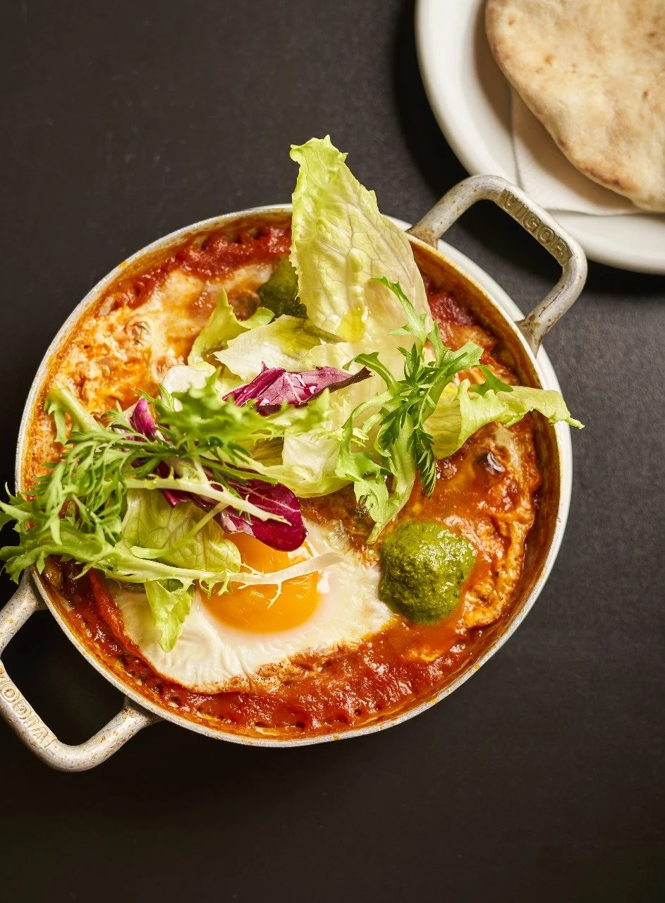 Uma opção bacana que também me seduz são os sanduíches, um pouco NY, um pouco SP. A sopa Borscht, de beterraba caramelizada, habita minhas memórias entre os melhores sabores da vida; é servida fria ou quente, com creme azedo, em grande ou pequena porção — como entrada ficou perfeita. O Shakshuka, que tem som e tradução de coisas misturadas — ovos poché cozidos no molho tomatudo — foi uma escolha depois da Borscht, e ainda pedi com linguiça bovina picante à moda da África do Norte.