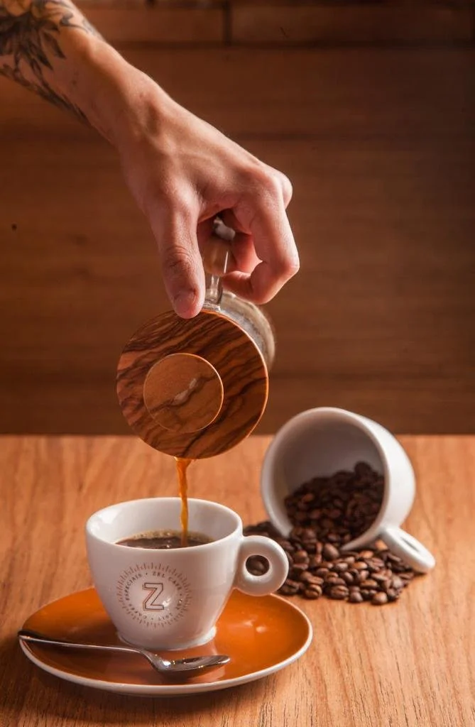 Um café filtrado na prensa francesa (foto Caio Ferrari para Zel Café)