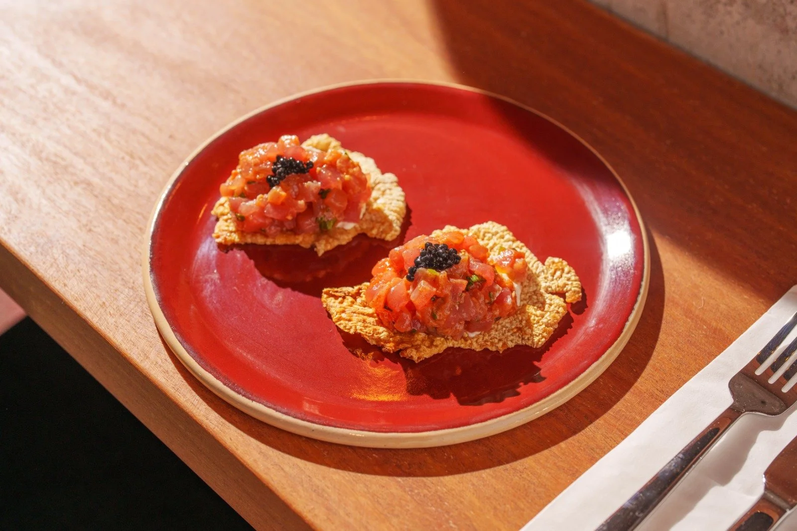 Um tiradito que mescla frango e atum marinado (foto: Kato)